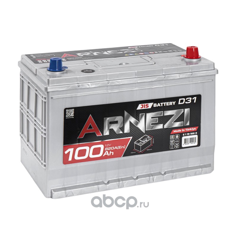 Аккумулятор ARNEZI JIS SMF 100 А/ч обратный R(+) 306x176x225 D31 EN 820 А