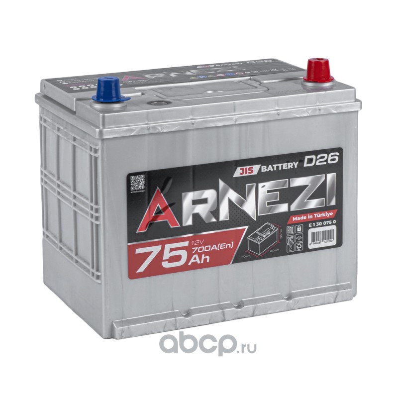Аккумулятор ARNEZI JIS SMF 75 А/ч обратный R+ 260x170x225 N50 EN 700 А